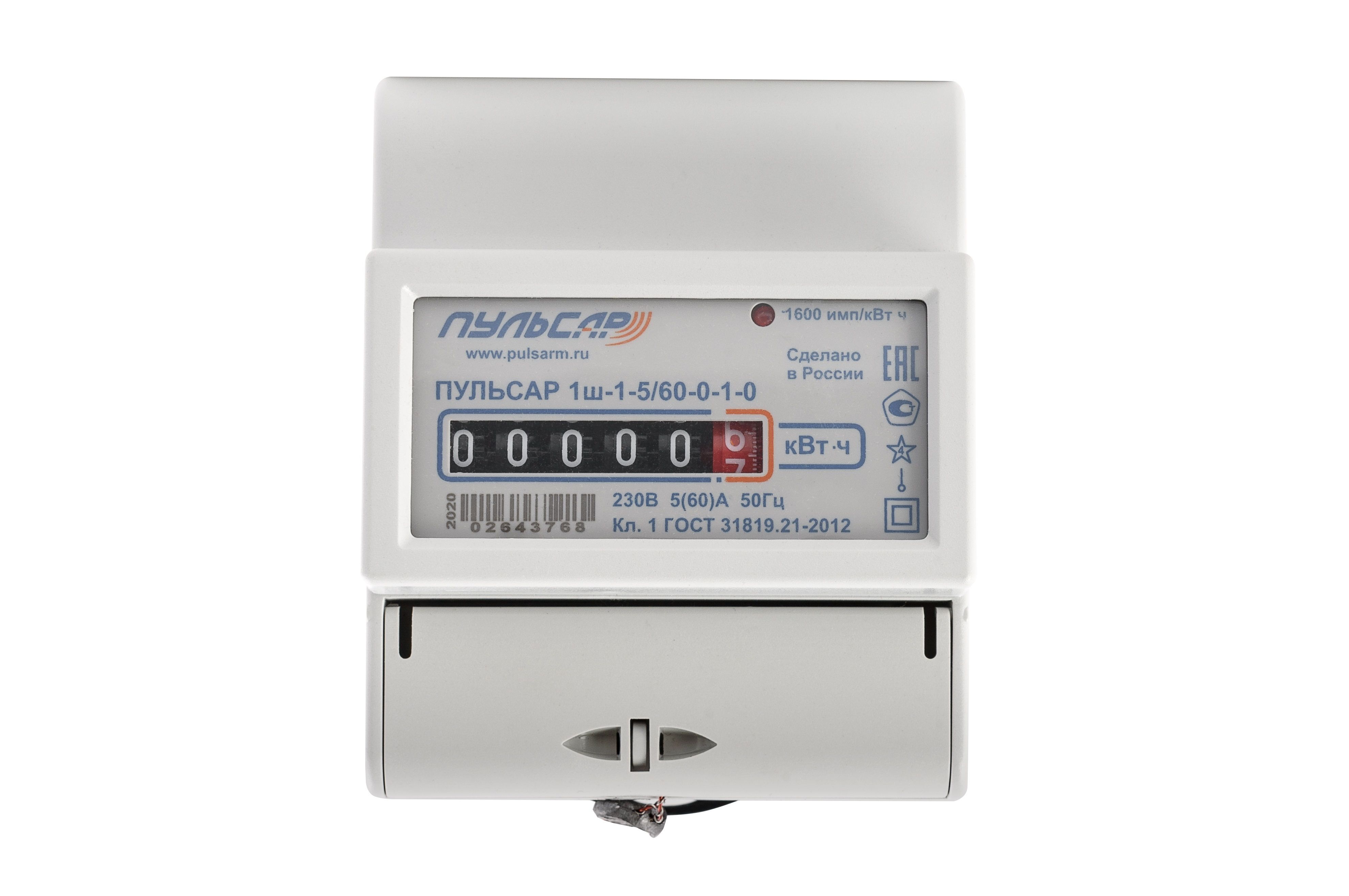 - Электросчетчик «Пульсар 1» импульсный выход 5/60 A с механическим индикатором Н00013899