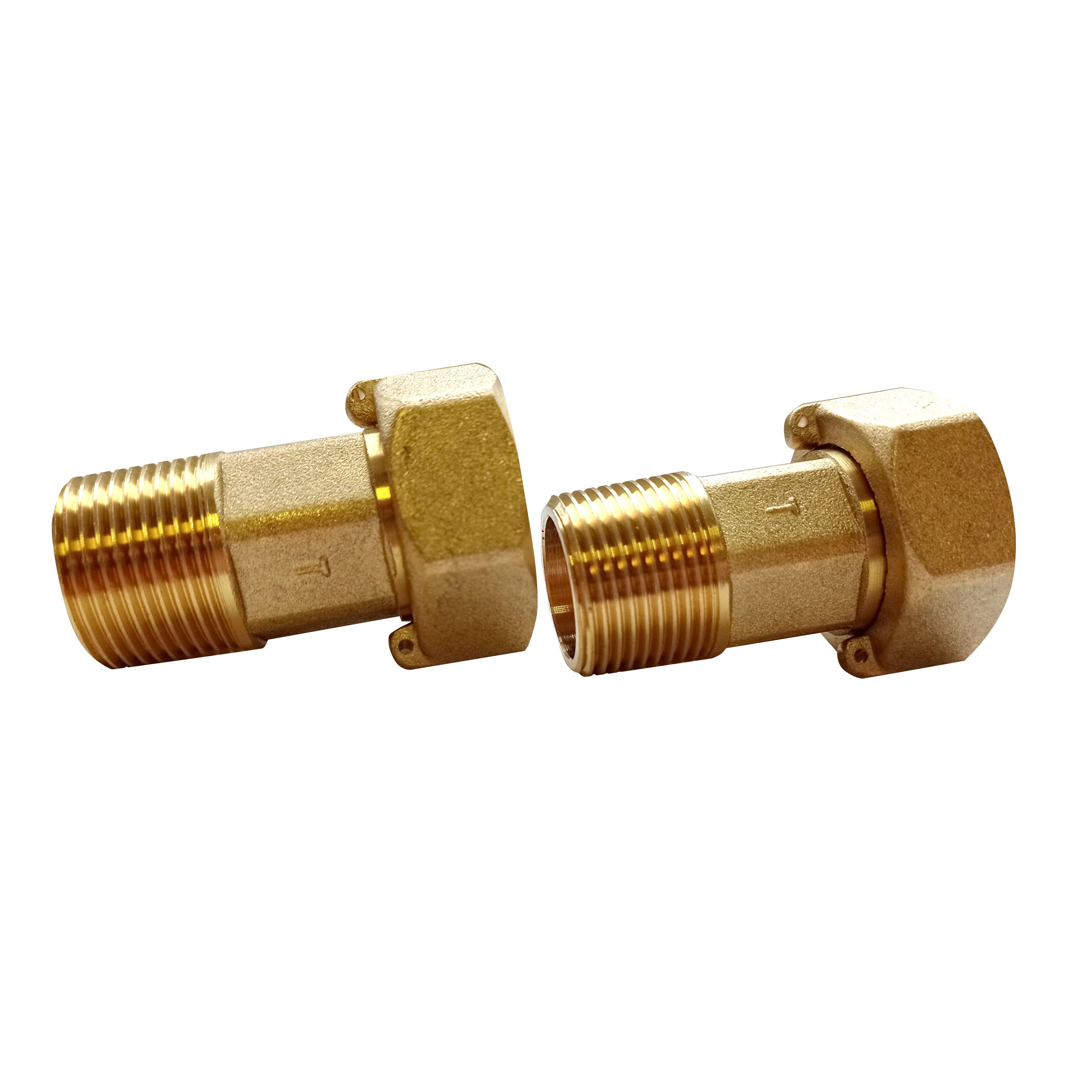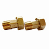 Набор присоединителей для установки бытовых счетчиков учета водопотребления не входит в упаковку водомера, а приобретается отдельно. Комплект данной модификации включает два штуцера с наружной резьбой и две гайки. Предусмотрены две уплотнительные прокладки из резины. Гайки и штуцеры изготовлены из прочной, устойчивой к коррозии латуни.