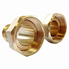 Набор присоединителей для установки бытовых счетчиков учета водопотребления не входит в упаковку водомера, а приобретается отдельно. Комплект данной модификации включает два штуцера с наружной резьбой и две гайки. Предусмотрены две уплотнительные прокладки из резины. Гайки и штуцеры изготовлены из прочной, устойчивой к коррозии латуни.