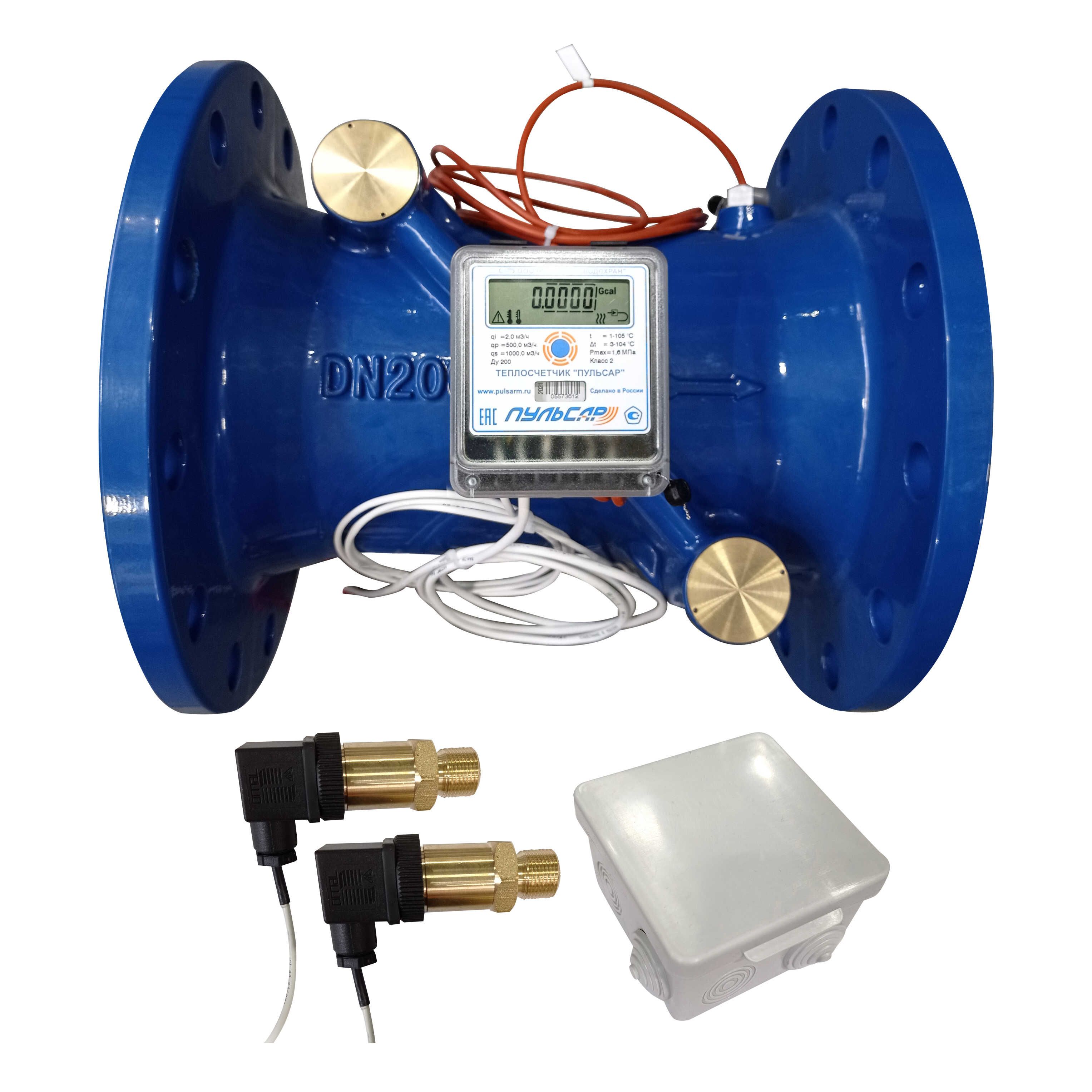 Общедомовый теплосчетчик Ду200 RS-485 + 3 имп. входа, qp=500 м3/ч, 2 датчика давления, прямой, 105°C