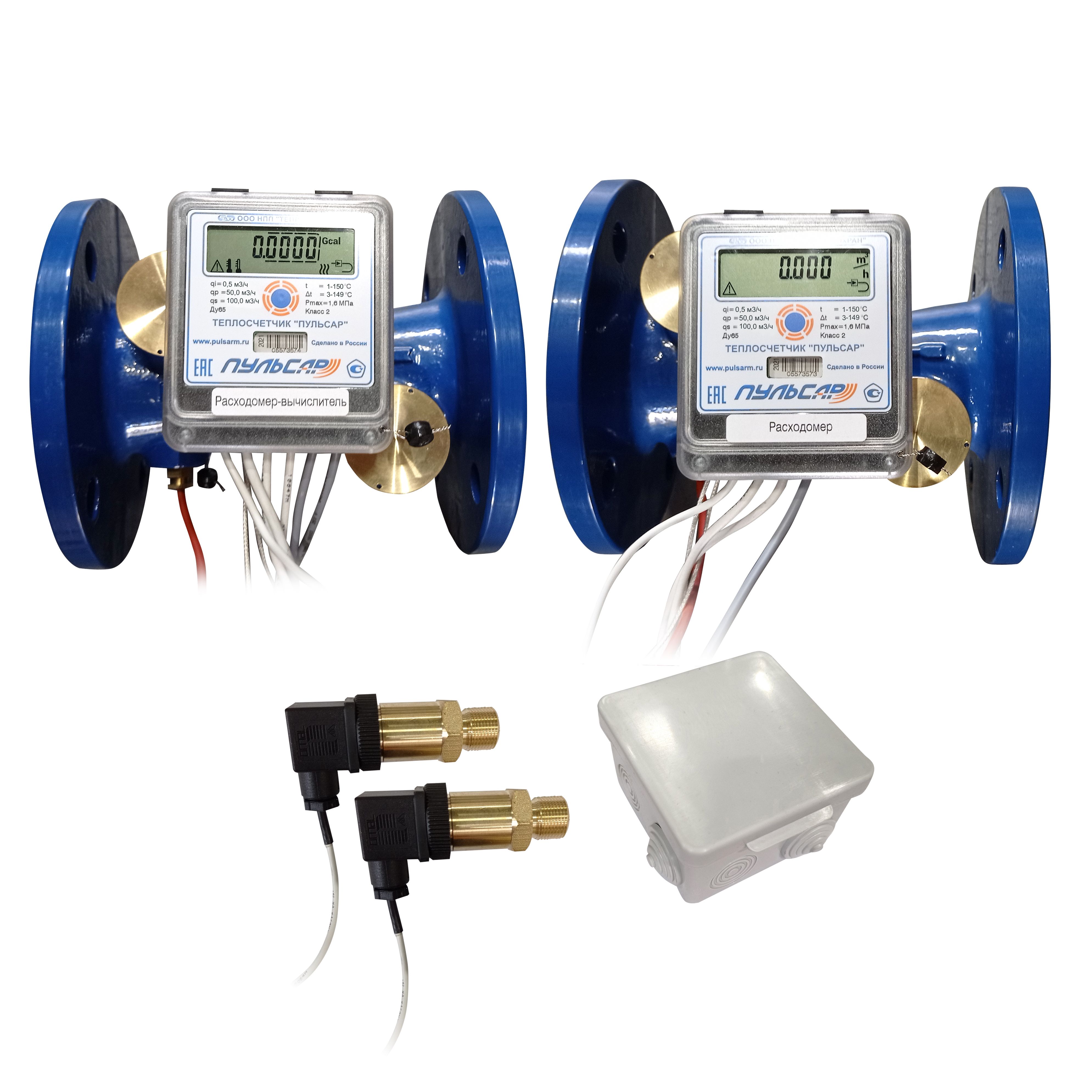 Общедомовый теплосчетчик Ду65 RS-485 + 2 имп. входа, qp=50 м3/ч, 2 датчика давления G1/2”, 150°C