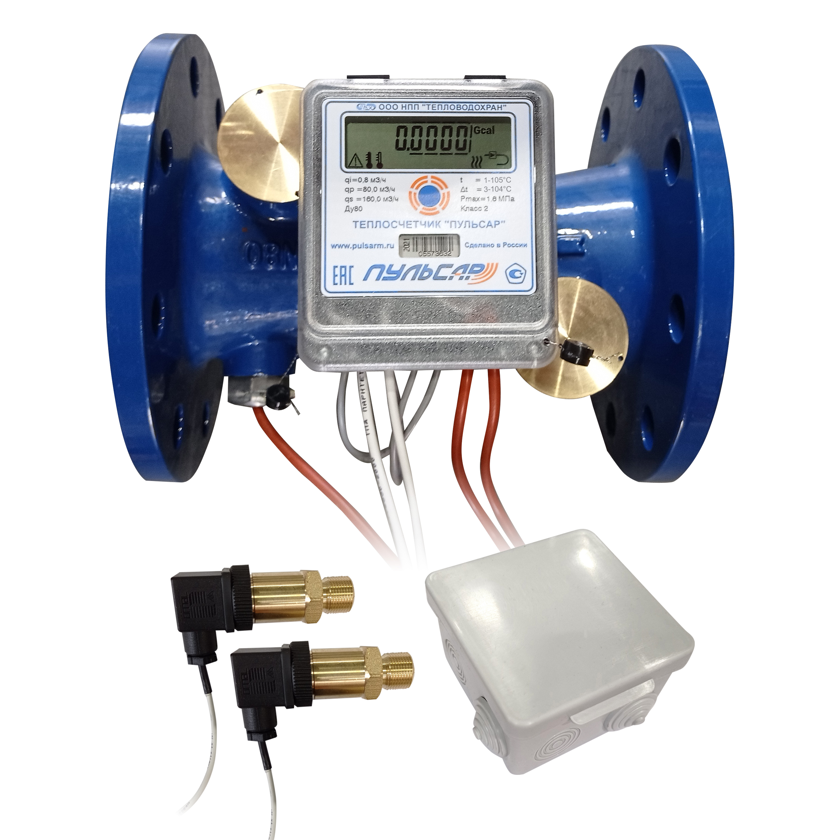 Общедомовый теплосчетчик Ду80 RS-485 + 3 имп. входа, qp=80 м3/ч, 2 датчика давления, обратный, 105°C
