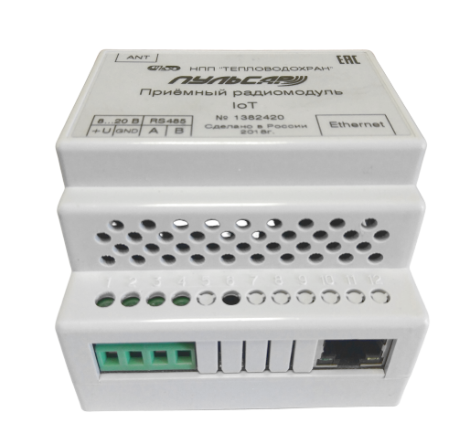 Приемный радиомодуль «Пульсар» предназначен для приема радиопосылок от счетчиков воды, распределителей тепла, регистраторов импульсов, теплосчетчиков, выпускаемых под торговой маркой «Пульсар», оборудованных радиомодулями IoT, выдачи информации по интерфейсу RS-485 или Ethernet на верхний уровень.