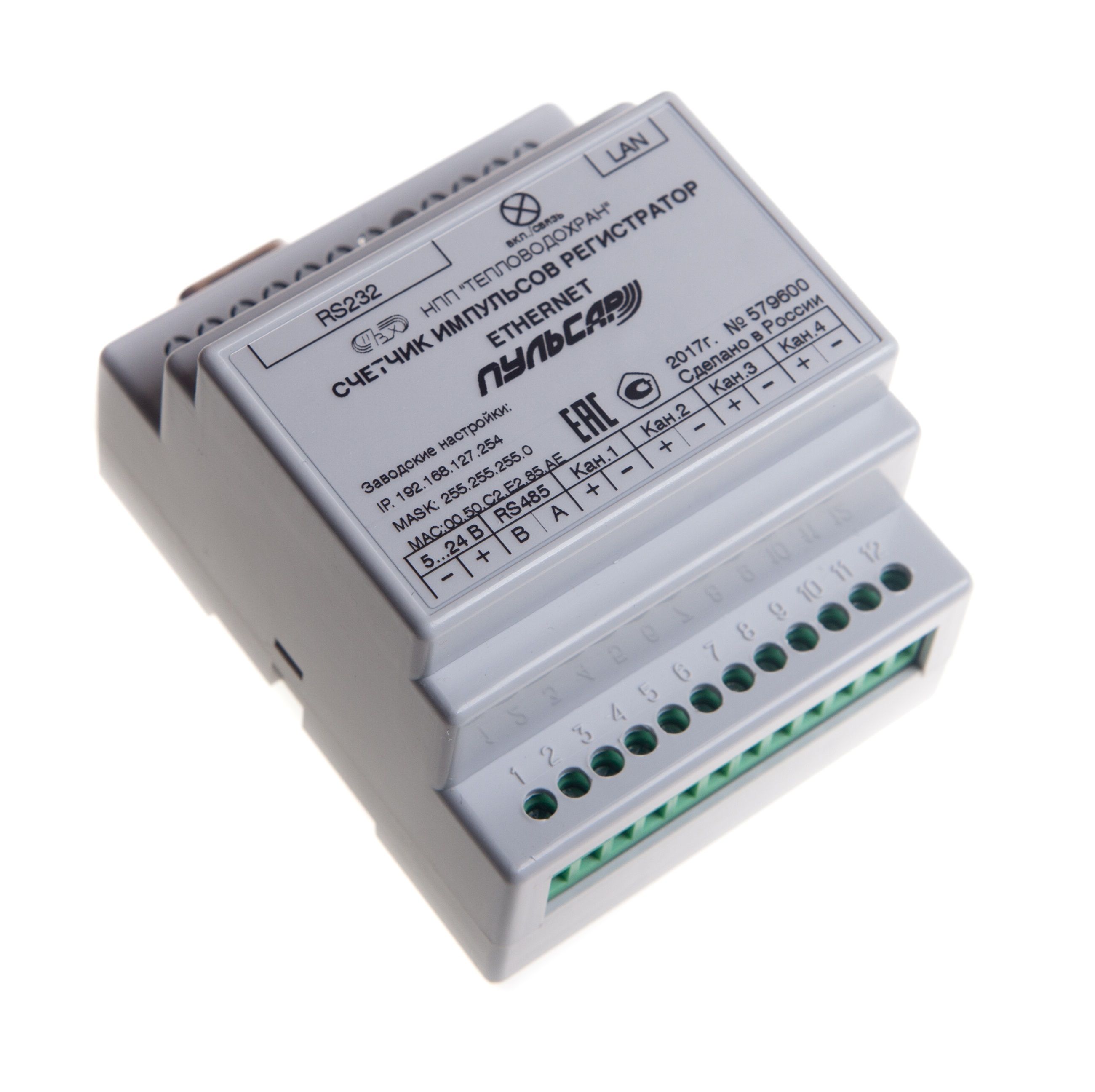 - Счетчик импульсов-регистратор «Пульсар» Ethernet 4-канальный Н00002725