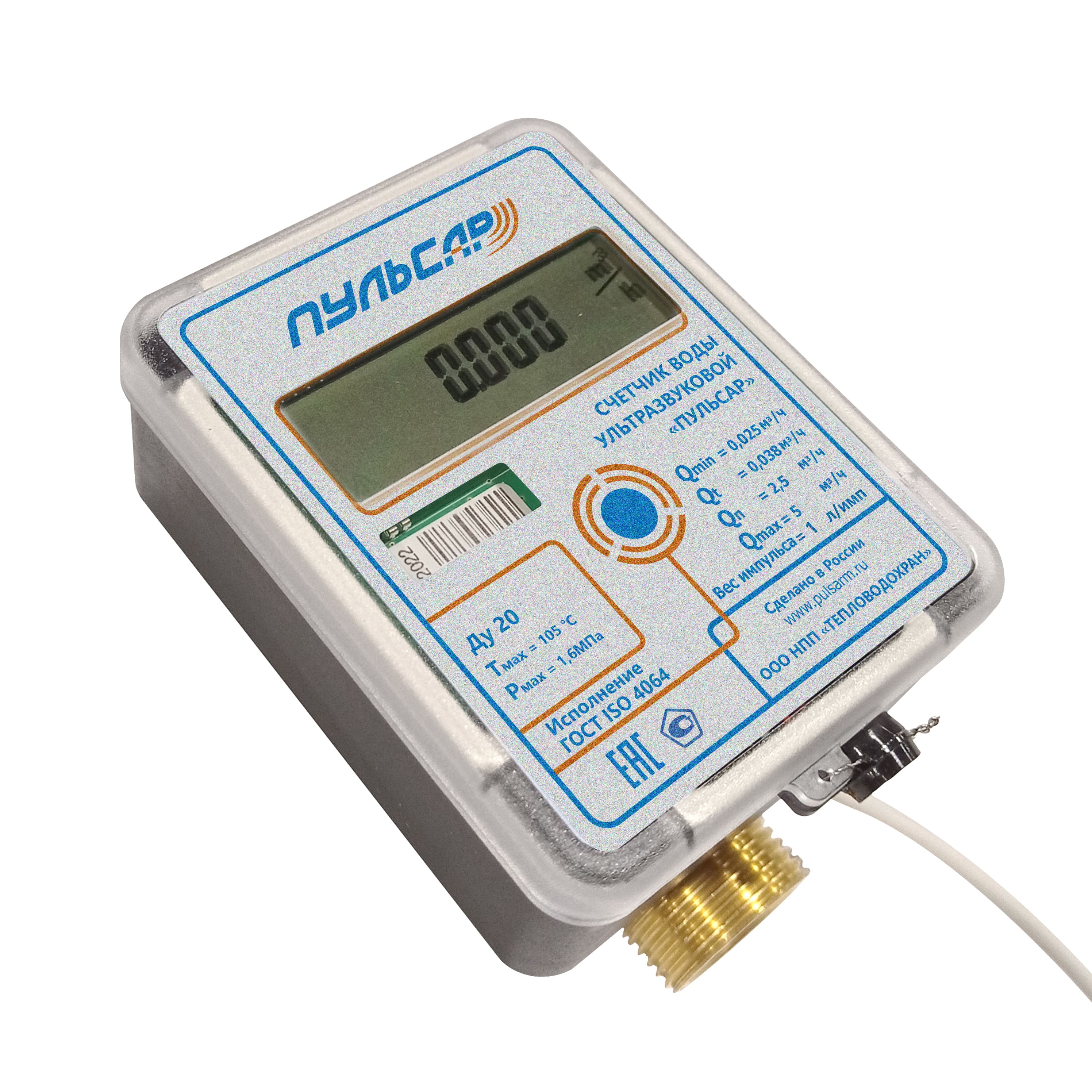 Ультразвуковой счетчик воды Ду20 импульсный выход, исп.1, Qn=2,5 м3/ч, 105°C